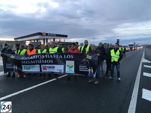Agricultores bloquean la N-232 en Calahorra durante un cuarto de hora.